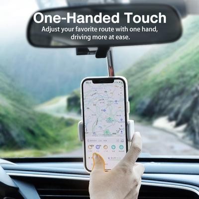 Возможности продукта: (Поддержка 360-градусной ротации) Поддержка горизонтального/вертикального переключения экрана, что удобно для вас, чтобы приспособиться к требуемому углом навигации, лучше планировать маршрут, и ездить легко. (Операция одной рукой) С помощью легкого толчка подставку можно скрыть. Касание одной рукой делает вождение более безопасным. Выдвижной и складной, удобный для ответа на телефонный звонок. (Невидимое хранилище) Вы можете хранить его за зеркалом заднего вида, нажав полюс и вытащить его в использовании. Он может быть скрыт, когда не используется, так что не будет вмешиваться в ваше зрение и повлиять на безопасность вождения. (Регулируемая длина) Подставка может быть расширена до 10 см / 3,9 дюйма, а пружинная пряжка может быть расширена до 9 см / 2,5 дюйма, что удобно для различных типов мобильных телефонов. (Два метода установки) В дополнение к зеркалу заднего вида, вы также можете установить его на сиденье, которое удобно для пассажиров, чтобы пройти скучное время в пути. (Сильная совместимость) Автомобильный держатель телефона совместим со всеми мобильными телефонами и устройствами шириной 47-71 мм. (Высококачественный материал ABS) Прочный и не легко царапается, стильный дизайн, прост в установке, прост и практичен.